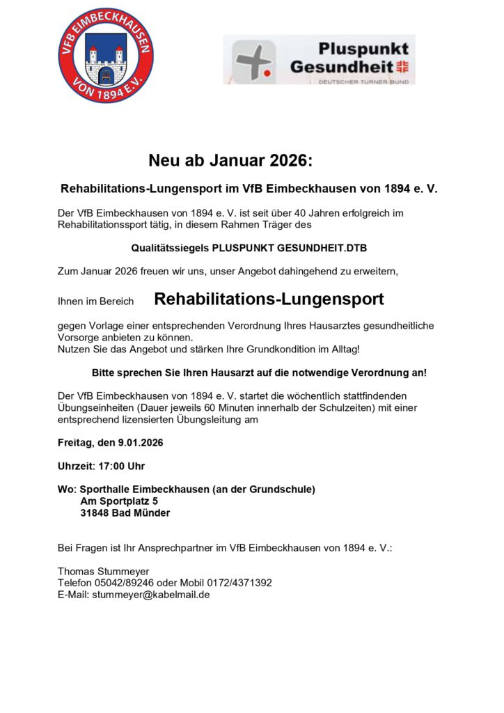 Neu ab Januar 2026 – Rehabilitations-Lungensport
